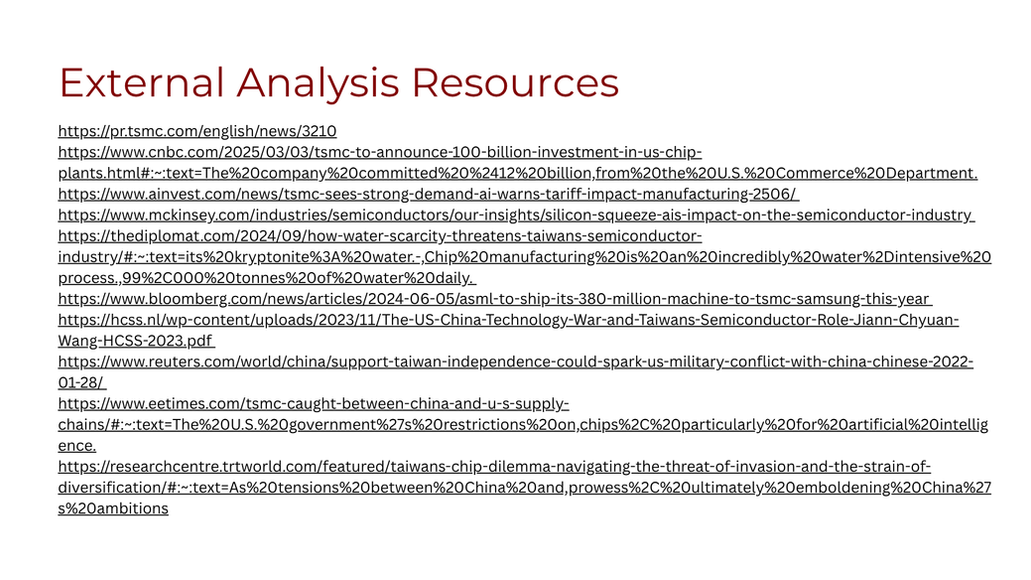 Our team was a finalist (2 out of 23 teams) for the case competition. In my team, I proposed TSMC as our case competition, with their current Arizona third fab expansion. Before LBW, I already followed the news related to TSMC because it connects to the topics I care about the most. With my personal experience, understanding the work culture and semiconductor educational pipeline, I was able to contribute to my team, leading a thorough analysis of our competition.